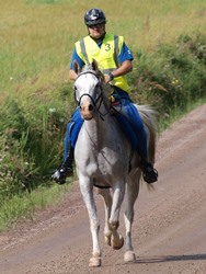 Puoli tuntia meni nopeasti, mutta saatiin taukopaikka taas valmiiksi ja koska Pauliina ja Matte lupasivat jälleen hoitaa viimeisen huollon, niin heillä oli vähän enemmän aikaa hoidelle vedet ja muut leiriin. Edessä oli taas 31 km lenkki. Tarkoitus oli antaa punatiimin ja Ineksen ajaa kiinni. Ero oli niin pieni, että sen turvin ei karkureissu ollut mahdollinen, joten Kari aloitti keskiketterästi ja takaa tulevat joutuivat silloin luonnollisesti vähän puskemaan, että saivat kiinni. Sitten oikeastaan lyötiin jarrut pohjaan. Se oli snadisti huono juttu. Ines ja Kari katselivat vinosti hymyillen toisiaan ja antoivat juniorin tehdä töitä. Ja ennen kuin huomasivatkaan, niin pölypilvi lähestyi ja Nea puhalsi porukan kärkeen. ERTF:llä oli palautuminen ottanut vähän aikaa ja lähtivät aika paljon perässä toiselle lenkille. Mutta kun nämä kupeksivat, niin sieltähän sitä tultiin. Nea ei jäänyt enää suuremmin rupattelemaan, vaan alkoi vauhdikas kymppi. Jos eka kymppi meni leppoisasti, niin toinen oli tosi, tosi kova. Kun sain jonkun kontaktin hurmioituneeseen ratsastajaan 20 km:n (50 km:n) kohdalla. Käytiin pieni keskustelu. Hevonen oli hirvittävillä ylikierroksilla ja sille oli ihan turha tarjota edes porkkanaa. Kari sentään joi ja vähän päänsä viilennyttyään jatkoi kävellen matkaa. Hetken Urho tietenkin teputti ja tempoi, mutta aika nopeasti se tokeni ja pääsivät Pauliinan huoltoon. Siellä sattui joku pieni kömmähdyskin ja meidän ämpärit joutuivat Jakken auton alle. Jakke herrasmiehenä antoi pari ämpäriä omasta autostaan. Olisi toki pärjätty ilmankin, mutta kiva ele. Täytyy palauttaa ämpärit seuraavalla kerralla.