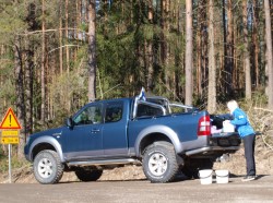 Itse odottelin kotona starttia, joka alkoi sillä, että vein Dottien Riitalle hoitoon. Vähän tuntui ikävältä jättää toipilasta toisten vaivoiksi, mutta tämä oli nyt diili. Vähän Dottie oli perääni itkeskellyt, mutta ilmeisesti sillä oli kuitenkin ihan kiva viikonloppu Teron kainalossa ja Riitan kaverina tallihommissa. Lenkille se ei tällä kertaa päässyt, koska liikkumisen kanssa on vielä vähän niin ja näin. Kun koira oli kuskattu Takametsään, niin lähdin talla pohjassa ajelemaan Kuuman suuntaan. Kari siellä piti reittiselostusta omintakeiseen tyyliinsä, jota virolaiset myöhemmin pilke silmäkulmassa kehuivat. Ehdin parahiksi paikalle, kun Kari lausui loppusanat. Kysymyksiä herätti hokkien tarpeellisuus, muuten ei ihmeitä tässä vaiheessa kyselty. Kartoista oli tehty hienot jättisuurennokset ja niistä jokaisen oli hyvä tulevia reittejä silmäillä.