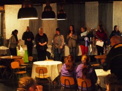 Iltajuhlaan ehdin juuri siihen saumaan, kun palkinnot oli jaettu. Jos en ihan väärin ymmärtänyt, niin Podiumin satula oli mieleinen palkinto. Ainakin ulkomaalaiset ymmärsivät palkintojen arvon. Ehkä myös sen, miten paljon sen eteen oli tehty töitä, että ne tänne takamaille saatiin. Mitään kun ei maailmassa saa ilmaiseksi, ei edes palkintosatuloita.
