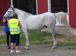 Yhdeksältä alkoivat hevostarkastukset. Kaikki saivat lähtöluvat. Vähän oudoksuimme eläinlääkärin hitautta. Yksi tarkastus otti aikaa n. 8 minuuttia. Puhuimme tästä toimihenkilöiden kesken ja totesimme, että ehkä alkutarkastukseen nyt vaan käytettiin enemmän aikaa. Ell ei juurikaan tutkinut hevosten kuivumista ja siitä hänelle huomautettiin vielä illan hämärtyessä, että hellesään vuoksi kannattaa ehkä erityisesti tutkailla sitä seikkaa. Kuivuminen tietenkin usein näkyy myös epäpuhtaana liikkeenä, mutta siltikin toivoimme erityistä huomiota kuivumisen tarkkailuun. Ja meillä oli myös valmius nesteytykseen, jos kuivumisia tai lämpöhalvauksia nähtäisiin.