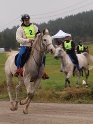 Kari saatiin kymmentä vaille lähtöajan selkään. Verkkasivat hetken ja lähtivät liikkeelle. Olisi pitänyt olla videokamera, sillä lähtivät hienoa koivukujaa ja Urho paineli harja hulmuten hienoa hidasta, mutta eteenpäin vievää laukkaansa. Näytti hienolta. Kaulaa oli kuutisen minuuttia, joten juuri sopivasti. Me olimme Pauliinan kanssa taas sopineet huolloista. Minä ottaisin ensimmäisen stopin ja Pauliina Matiaksen kanssa toisen. Ihan ajankäytöllisistä syistä haluttiin ottaa lyhyelle 15 km lenkille kaksi huoltoa ja tein omavaltaisen päätöksen ja lisäsin vielä kolmannen.