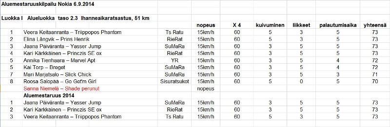 4. Marjatsalo Mari - Slick Chick5. Niemelä Sanna - Shade Peruuttanut