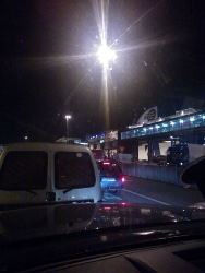 Joukon nuorimmainen kertoi, ettei koskaan ollut ollut näin kaukana kotoa. Aurinko olikin noussut valaisemaan maisemaa ja viimeiset 40km saimme nauttia suurkaupungin kiertotien aamuruuhkasta. Jos yöllä liikenne oli sujunut hyvin niin nyt hullut rekkakuskit olivat jälleen ilonamme. Kahdeksalta olimme kohteessa ja jälleen oli kiire vessaan.