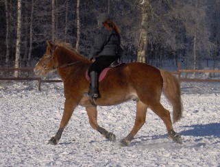 Taas aurinkoinen pakkaspäivä. Hopo haetaan tarhasta kymmenen kieppeillä. Teimme ensin pitkät alkuverkat ja sitten kentälle pyörimään. Ihan perussettiä ja lopussa hierotaan laukan nousemista käynnistä. Hopo-raasu taas ihan hikisenä.