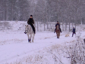 Kun lauantaiaamu sarasti, tuntui jalka terveeltä ja aurinko pilkisteli taivaalta. Pakkasta oli reippaat 5 astetta. Hopo tuli lönkytellen portille vastaan hyväntuulisena, kun ei ollut eukkoa nähnytkään viikkoon. Ainakin emäntänä täytyy sen verran inhimillistää, että vaikutti sen ikävöineen mammaa.