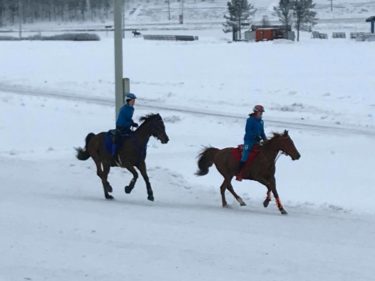 Radalla oli jokunen kärryttelijäkin, mutta alkupöhinän jälkeen ratsut eivät niistä enää piitanneet. Kvartetti kiersi rataa alkuvrkkojen verran kimpassa ja kun varsinainen harjoitus alkoi, niin pariutuivat. Kumpikin pari aloitti oman harjoituksensa ja jokaisen kierroksen jälkeen kirjattiin sykkeet.