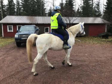 Mä tein sisähommat ja Kari hääri ulkona. Juotiin kahvit ja teet ja kun aamu valkeni niin Sella haettiin sisälle ja lyötiin satula selkään. GluShut joutuivat nyt toiseen tulikokeeseen. Alkukäynnit asfaltilla ja sitten kiihtyvällä vahdilla mutkikasta kylätietä ja vauhtisuoralla nopeudet nousivat helposti neljäänkymppiin ja kappasta vaan tossut pysyivät kaviossa kiinni. Hokki tuntui purevan ärhäkästi ja kaiken kaikkiaan äijä oli erittäin tyytyväinen palailtuaan tallille. Yksi hokki jäi reitille ja se melkein tiedettiinkin, sillä Kari meni paukauttamaan vasaralla kenkkää sen jälkeen kun hokinreikä oli jo tehty. Sitä ei kenkä kestänyt ja jengat oli menetetty jo sillä hetkellä.
