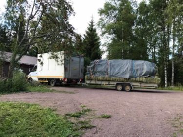 Toisella meistä oli taas aamulla käynnistymisvaikeuksia. Tallille oli tulossa metsuri kaatamaan lahoja ja pystyyn kuolleita (hevosten tappamia) puita, joten sinne piti menna hyvissä ajoin siirtämään uhanalaiset asiat pois vaaravyöhykkeestä. Yksi tälläinen oli traileri, joten pakko sinne oli vaan mennä. Ja mentiinkin, tosin mustat kiehkurat päiden päillä. Paitsi Pedrolla ei ollut vaan se oli intona taas reissussa mukana ja pääsikin paluumatkalla uimaan.