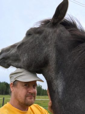 Viiden aikaan Kari palaili tallille. Metsuri oli hommissa ja hienosti kaatuivat puut kohdilleen. Laitumella odottivatkin jo lenkkikaverit ja helteen piiskatessa hyppäsivät selkään. Tekivät alkuun pitkän käyntiverkat ja sitten reippaampaa menoa vaihtelevillä pohjilla. Tossut pysyivät matkassa mukana ja muutenkin meno olöi mukavaa. Kari taas kehui, että todella hyvältä mammatamma tuntui. Reilun tunnin lenkkeilivät ja vajaa 15 km tuli mittariin. Sella sai ämpäripesun ja sen jälkeen pääsi takaisin laitumelle. Taivaalle alkoi muodostua mustaakin mustenpia pilviä.