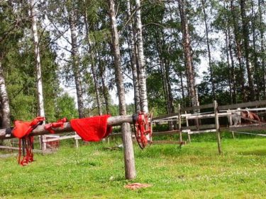 Lähemmäs 18 kilsaa taivalsivat n. 80 minuutissa hevosiaan kuulostellen. Kaikki vaikutti olevan kunnossa. Olivat Karin kanssa puhuneet vähän taktisista jutuista ja jatkettiin niistä myös lenkin jälkeen samalla kun huuhtaistiin hevoset ja laiteltiin kamat loppukuntoon. Sara hinkutti varusteitaan läpi pieteetillä. Kaikki ovat nyt puhtaina ja kiiltävinä viikonlopun kisaa ajatellen. Sara oli hyvällä mielellä ja mielestäni voimme olla tosi levollisina. SM-kisa ei ole millään mutoa kauden päätavoite, se on yksi välipala ja hyvä paikka hioa tiettyjä asioita ja yksi askel matkalla 120 km:n kisoja. Mielestäni Sara saa siis lähteä kisaan aika paineettomasti ja koska osallistujia on vähän, niin saattaa sieltä mitalikin tulla. Tai sitten se paljon pelätty hylkäys. Kaikkihan on mahdollista, mutta kisana pieni, koska osallistujia taitaa tosiaan olla 4-5 ja vauhdinkin voi ihan itse päättää, ei ole sellaisia vauhtihirmuja kuin esimerkiksi Virossa oli keväällä.