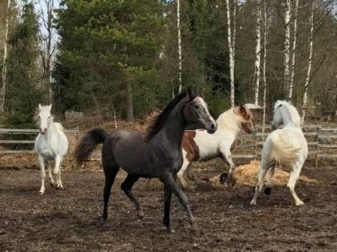 Pitkäperjantai. Caro laitteli hevoset aamulla pihalle, mutta oltiin itse mestoilla jo kymmenen korvilla. Kävin virittelemässä tarhoja jakavat lagat paikoilleen ja tuikattiin varsat samaan lohkoon. Ei suuria tunteita. Ei oikeastaan yhtään mitään tunteita. Tehtiin tallihommia ja seurailtiin tilannetta. Sellalle tuli pieni hätä kun se huomasi, että ei pääsekään varsansa luo. Hetken päivysti langalla ja siirtyi sitten toiseen paikkaa tarkkailemaan, mutta vartissa oli unohtanut asian ja keskittyi heinäsäkkiinsä. Jäljistä päätellen kevättä on rinnassa- Hammasta on saanut jokainen vuorollaan. Pieniä vaurioita siellä ja täällä, mutta kuulunee asiaan. Tatankaa oli haukattu pepusta useamankin kerran.