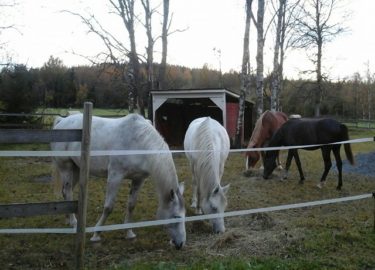 Kävelyretki oli mennyt hyvin ja Satu taas kovasti kehui varsaa. Kun se lähti tallista, niin Sella muutaman kerran hirnahti perään ja pyörähti kerran karsinassaan. Ei siinä sen enempää ja tytteli palaili aikanaan takaisin talliin ja iltaheinilleen. Puuhailtiin siinä vielä hyvä tovi ja Kari laitteli vedet ja heinät seuraavalle aamulle valmiiksi. Mulla oli tuliaisina Haudankosken omenoita ja jokainen sai muutaman vielä yöpalaksi. Hiljaisuus laskeutui tallipihaan ja kiirehdimme kotiin pimeän jo laskeuduttua.