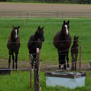 Puolen päivän kieppeillä lähdin Tiipiille. Olin vähän jännittynyt, miten Tatankan käy, kun joutuu isoon laumaan isojen hevosten kanssa. Koska varsalauma oli jo laitumella ja mulla ei näin ollen ollut hevosta laskettavaksi irti, niin sain komennuksen mennä takalankojen äärelle. Ajatuksena oli, että jos siitä painavat läpi ja peltoon, niin on sitten joku haalimassa niitä kiinni. Sain Fifin omistajan seurakseni ja siellä me sitten yhdessä odotettiin ja jännitettiin.