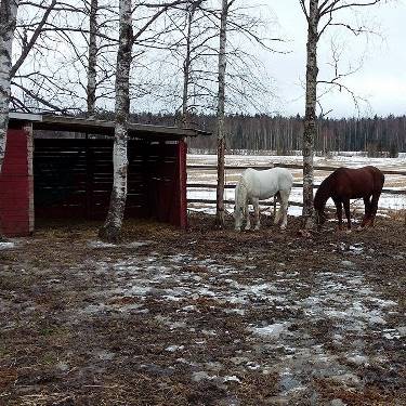 Aamutalli ja ihana aurinko. Lintuja lenteli taas runsaasti ja ihailimme niitä. Etelästä palaavat kookkaat linnut ovat jotenkin vaikuttava näky. Harjailin hevoset ja ne pääsivät ulos heinille. Hevosilla oli taas uusia havuja ja pajuja järsittävänä. Päivä vierähti erilaisia asioita puuhaillessa. Illalla jo vähän hämärissä palailimme tekemään iltatallia. Kotimatkalla auton nokan edestä tien ylitti kaksi nuorta, liukuvasti liikkuvaa hirveä. Luonto on nyt heräämässä. Sen aistii kaikesta. Ihanaa on viettää muutama ylimääräinen vapaapäivä luonnosta ja hevosista nauttien.