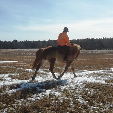Aloin vähän huolestua, kun ratsukoista ei kuulunut mitään. Mun puuhat oli jo tehty ja liikuskelin tallipihalla vähän levottomasti. Lopulta saapuivat. Kaikki oli mennyt erinomaisesti. Tekivät reilun 12 km lenkin ja etenivät pääsääntöisesti varsin rauhallisesti, joten aikaakin vähän kului.