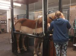 Kaisaa ei saatu kiinni ja alueen päivystävä totesi, että on niin kiirettä, että ei ehdi. Kun päästin Hopon taas hetkeksi pihattoon makuulle, niin se asettautui kuin koira. Hörisi hiljaa ja katsoi mua syvälle silmiin, kun kumarruin sen kasvoja silittelemään. Se oli jotenkin todella tyyni ja mulle tuli erittäin vahva tunne, että tämä oli tässä. Yhdeksän jälkeen todettiin, että omin avuin homma ei laukea, vaan on pakko viedä se klinikalle. Talutin sen traileriin ja toivotin hyvää matkaa. Kari lähti liikkeelle ja mä jäin tekemään iltatallia loppuun. Soiteltiin ja viestiteltiin tilanteiden kehittymisestä. Parempaan suuntaan ei ainakaan oltu menossa. Klinikalla Hopon sai kiparia ja pistettiin tippaan. Todettiin paha kaasuähky, joka jo itsekin oli ymmärretty ja suoli oli mennyt mutkalle ja kääntymässä pahaan suuntaan.